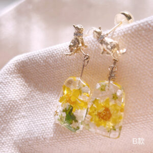 透過花材的選擇與擺放,細緻而優雅的設計,使得乾花耳環本身就成為一件藝術品,展現出你對於美的獨特眼光和創造力。